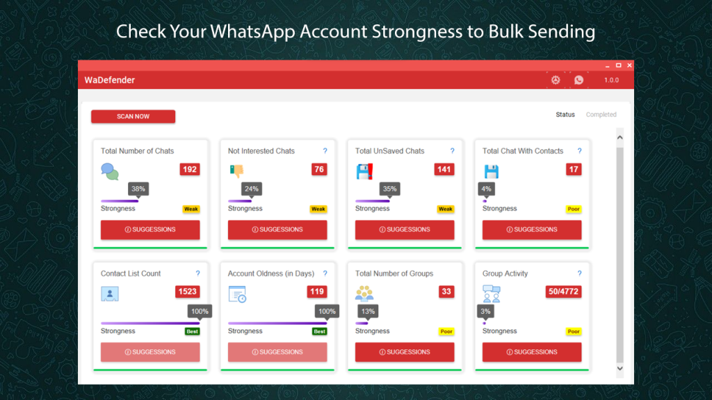 Setelah mengirim pesan massal menggunakan layanan pengirim pesan massal apa pun, WhatsApp dapat memblokir akun Anda dengan berbagai alasan. dengan WA Defender anda bisa mempertimbangkan berbagai parameter yang perlu diperhatikan sebelum mengirim pesan massal.